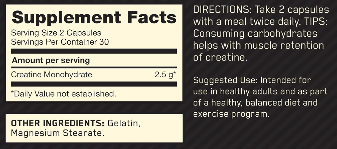 Creatine Power: Take 2 capsules daily, ideally around your workout or with a meal on non-training days.